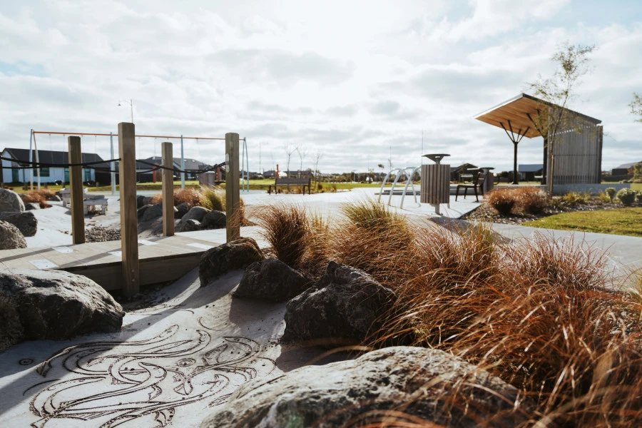 Te Whāriki is protected and enhanced through a programme of ecologically sustainable development. Impact on the environment is minimised by reducing pollution and noise, conserving resources, preserving the landscape, and encouraging native plants. The community features varied shrubs and trees in the streetscapes and open spaces, creating a natural feel, minimising the need for watering and attracting local birdlife.
